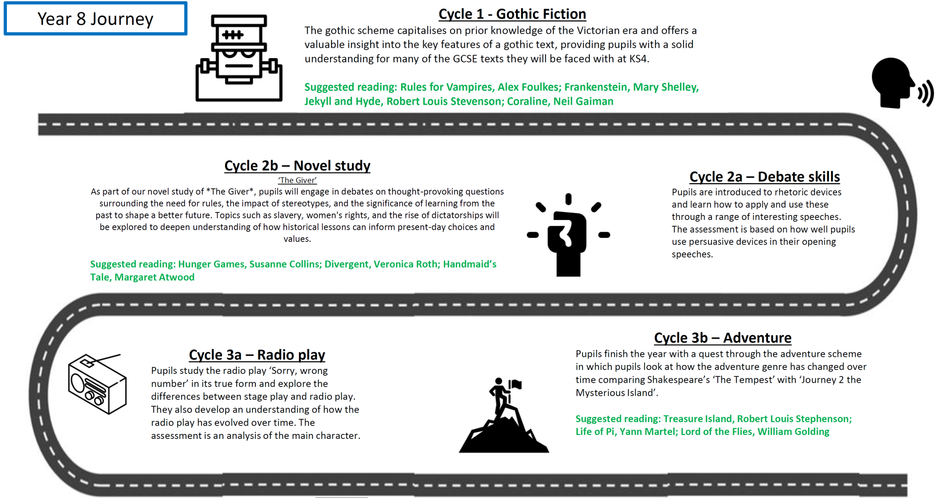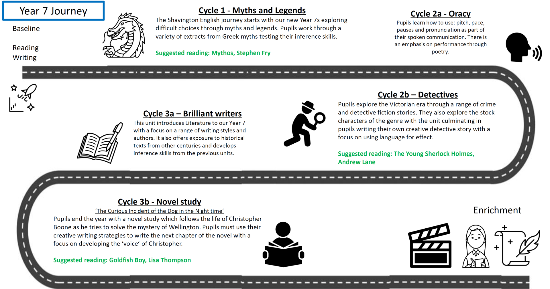 Pupils are encouraged to be ambitious in their approach to tasks and to show resilience at every step of their learning journey. In nurturing a safe environment in our English classrooms, pupils feel confident when contributing to class discussion and sharing their work with peers and this is proven to have a positive impact on attainment.