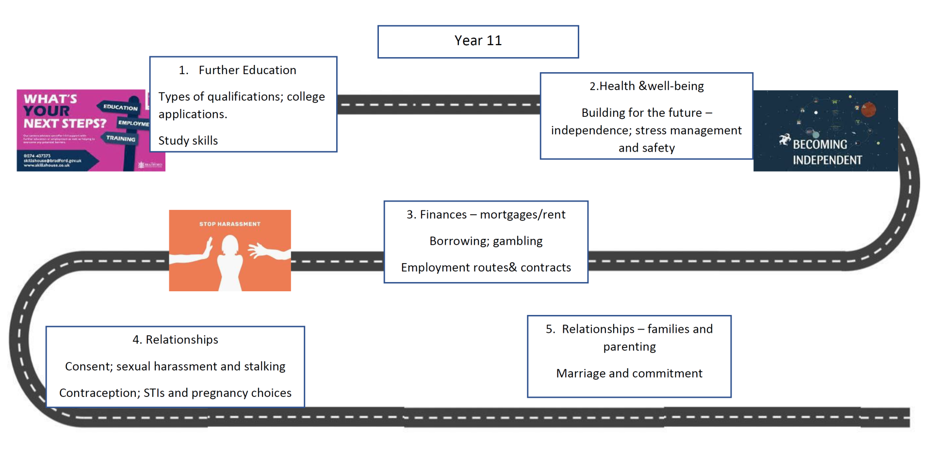 - To develop clear pathways from Year 7-11 that focus on a range of topics that are age appropriate.