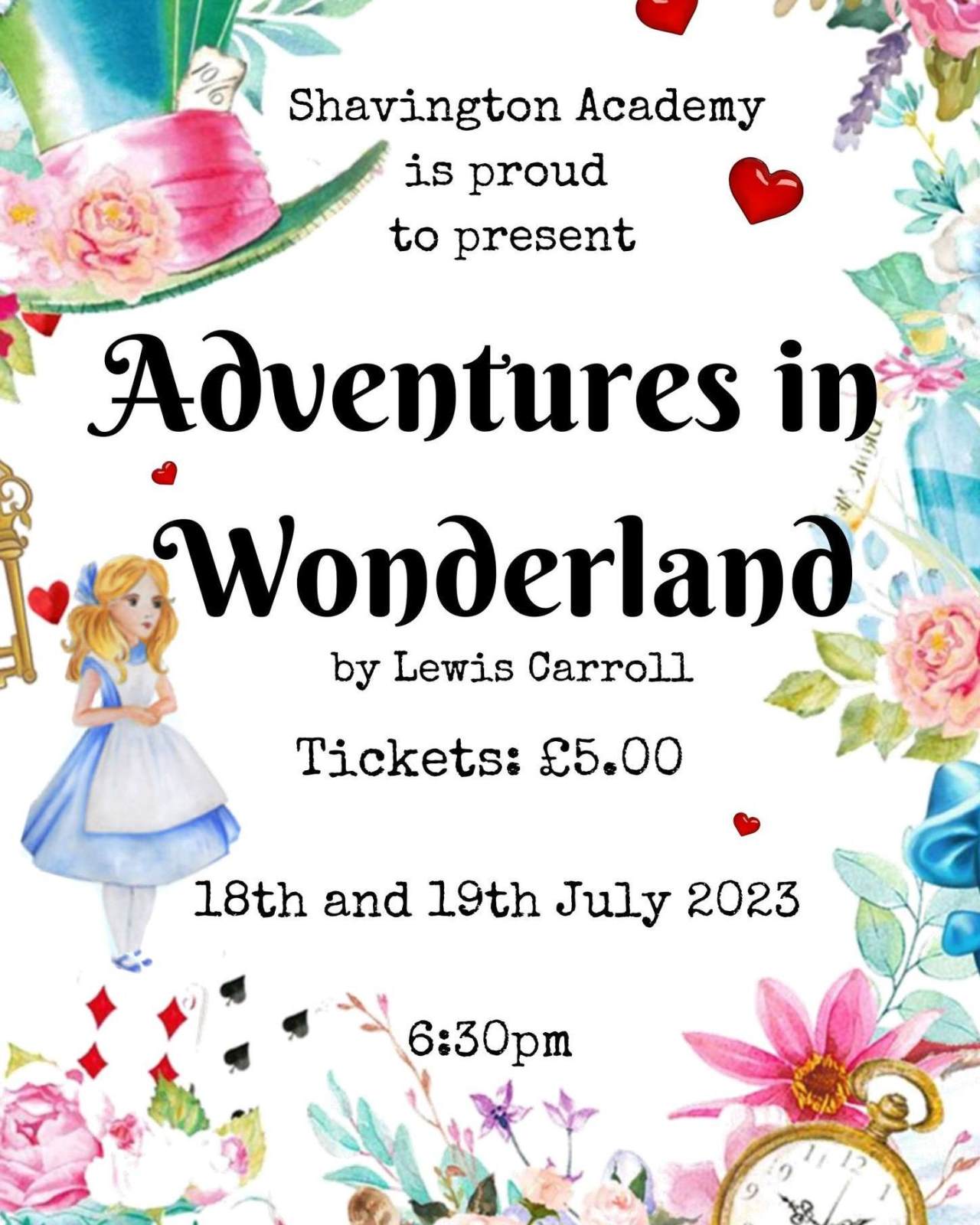 Tickets are selling fast for our school production: 'Adventures in Wonderland' Tickets are £5 and are available from main reception at the academy. DON'T DELAY - BUY TODAY! It promises to be a WONDERful event. Please come and support our very talented young people who we know will put on a great show. #ShavingtonSpirit #SPARK #SADrama #SAWonderland
