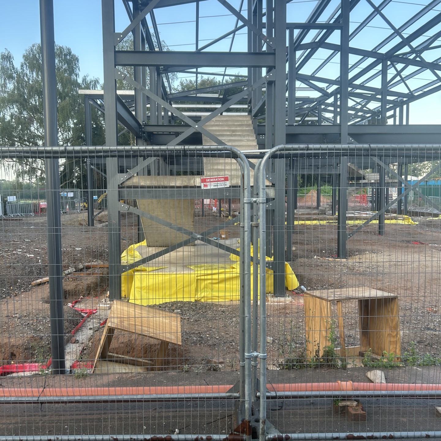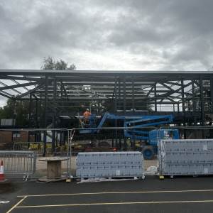 New Build Friday Photo Update! Things are really starting to take shape now: the frame for the roof on our new build is in place along with two new staircases.